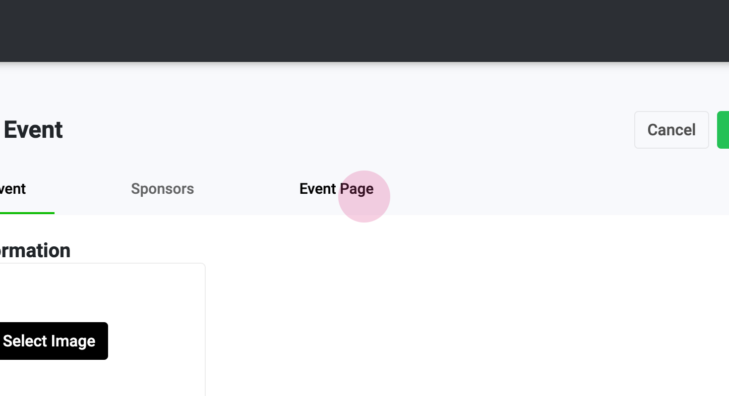 Start by clicking on 'Manage> Events', then select 'Edit' and navigate to the 'Event Page' tab.