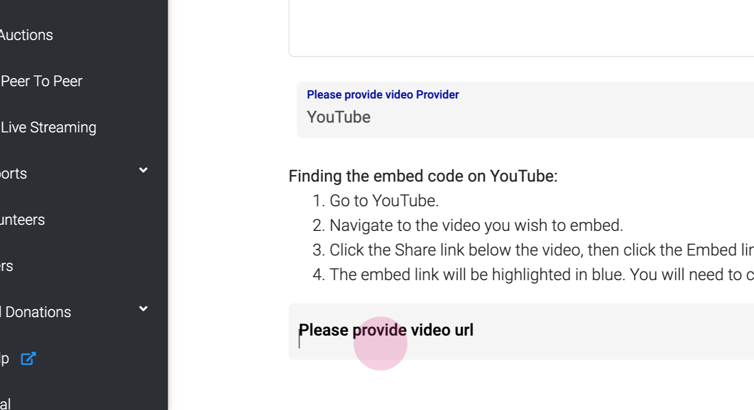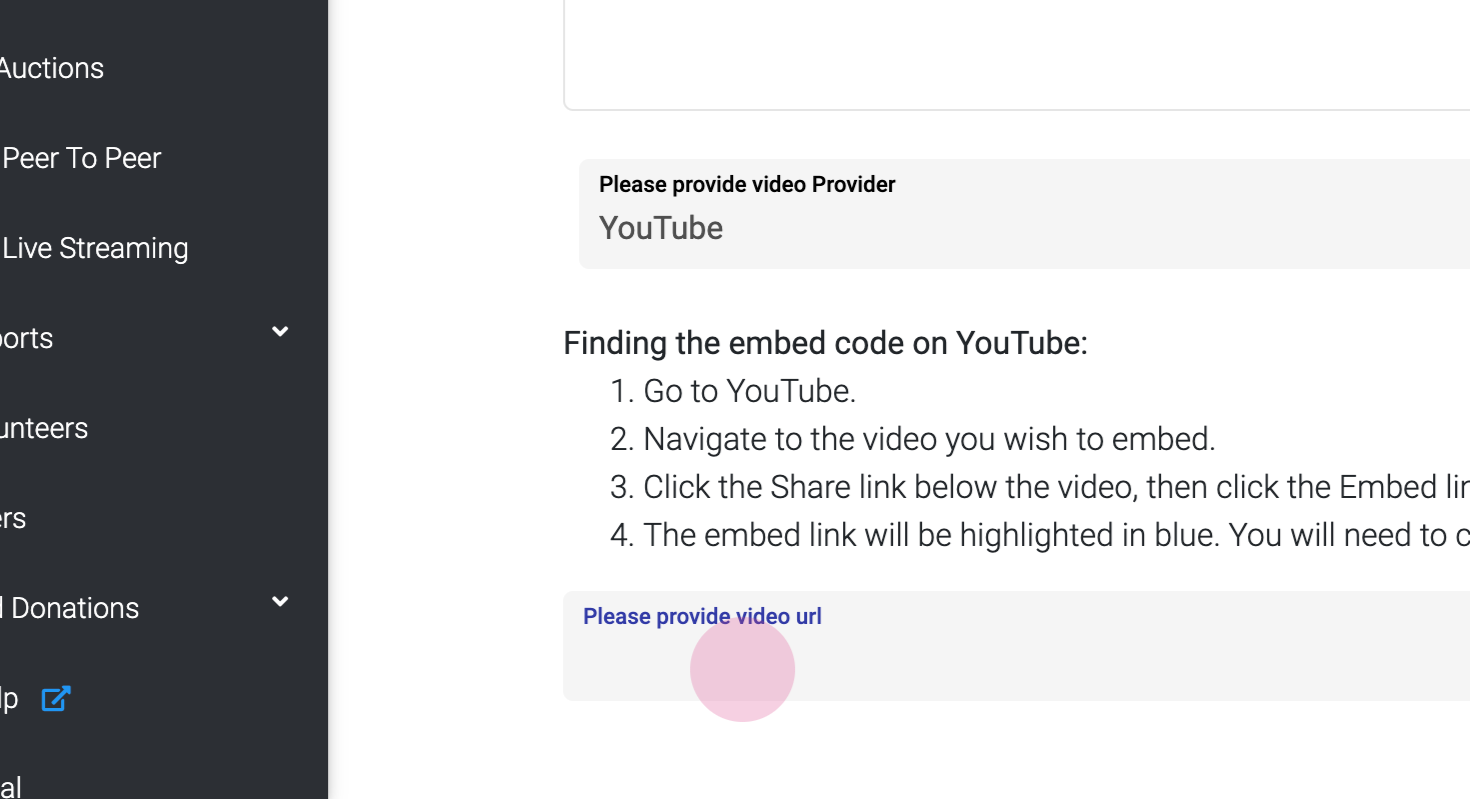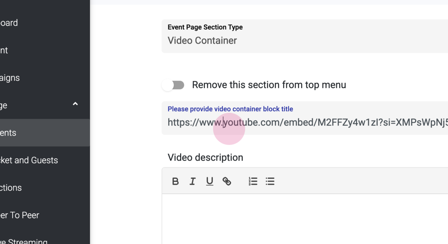 Return to your event page and paste the copied embed code into the 'Video URL' field.
