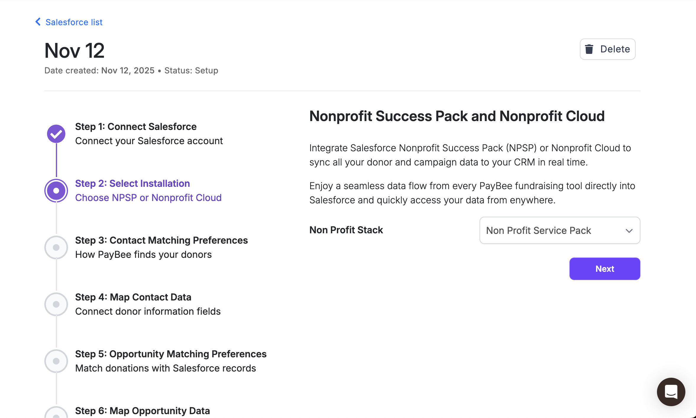 The PayBee + Salesforce integration allows you to connect all donor and donation data collected on PayBee to your Salesforce Nonprofit Success Pack (NPSP) or Nonprofit Cloud (coming soon) account.
