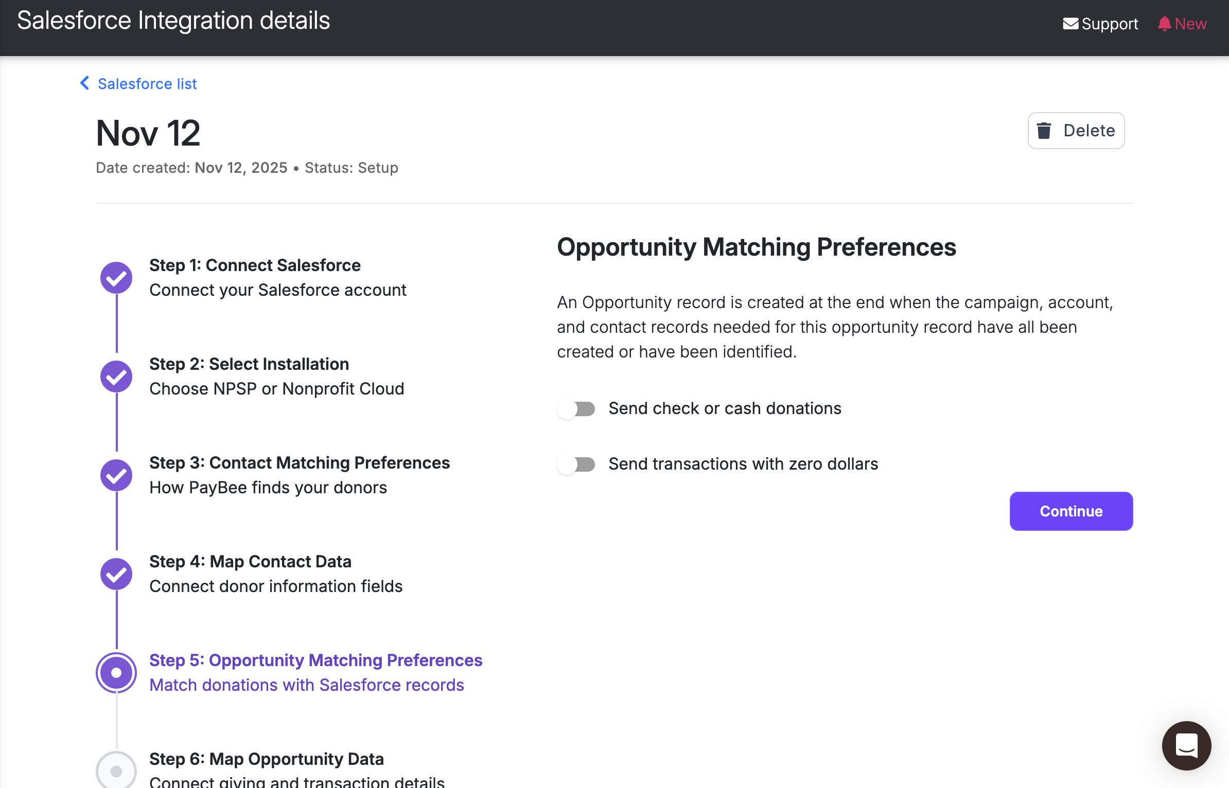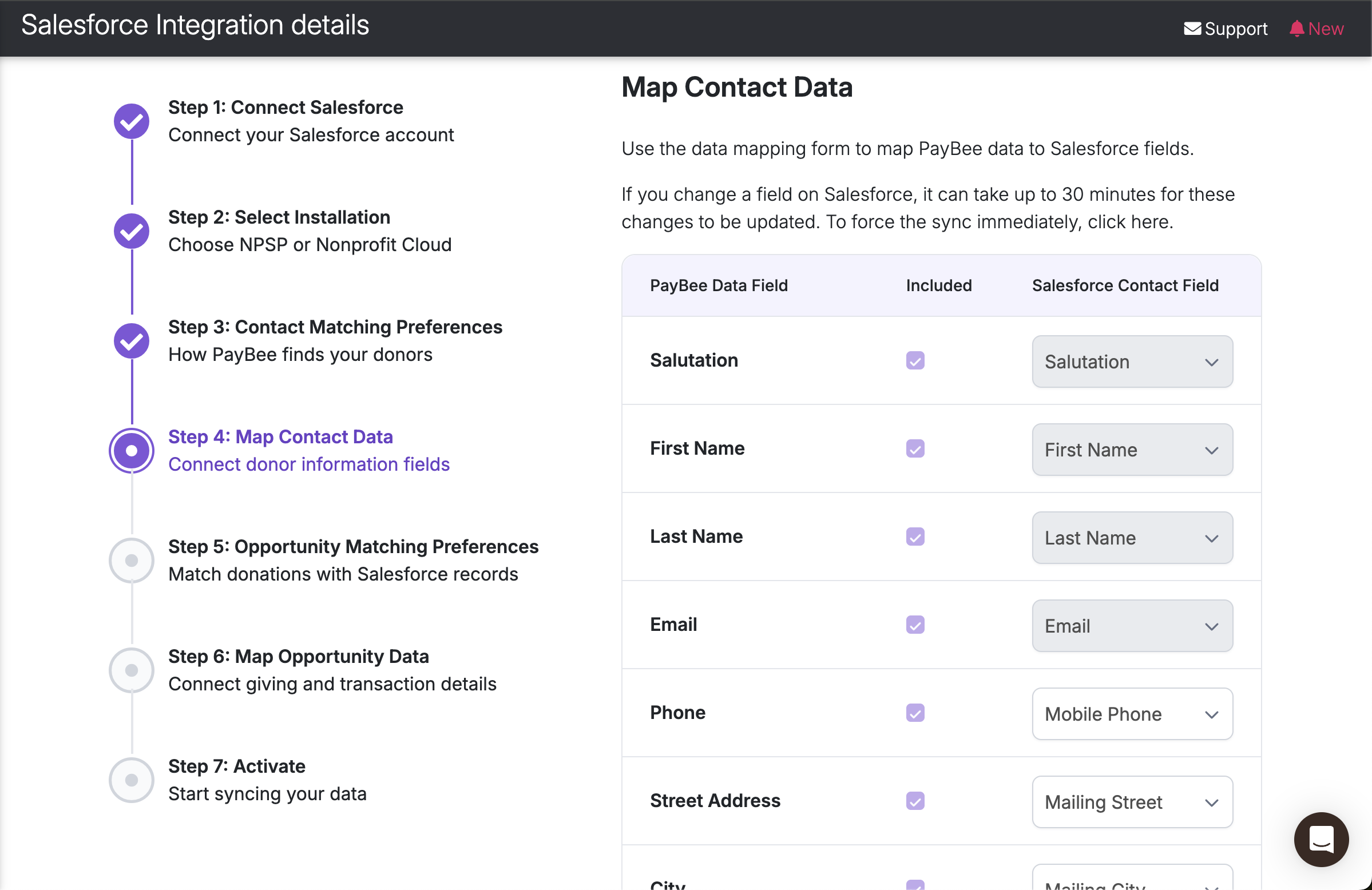 Now, map the the donor data from PayBee into the Salesforce data fields using the form displayed on the screen.